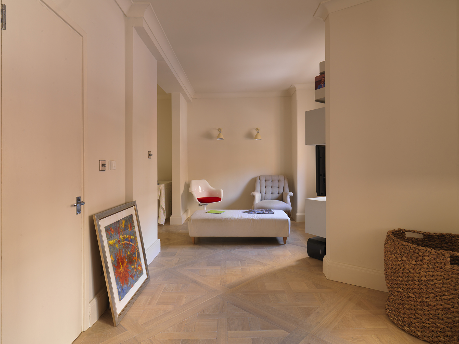 Bespoke pattern oak parquet, custom made and full installation service provided.