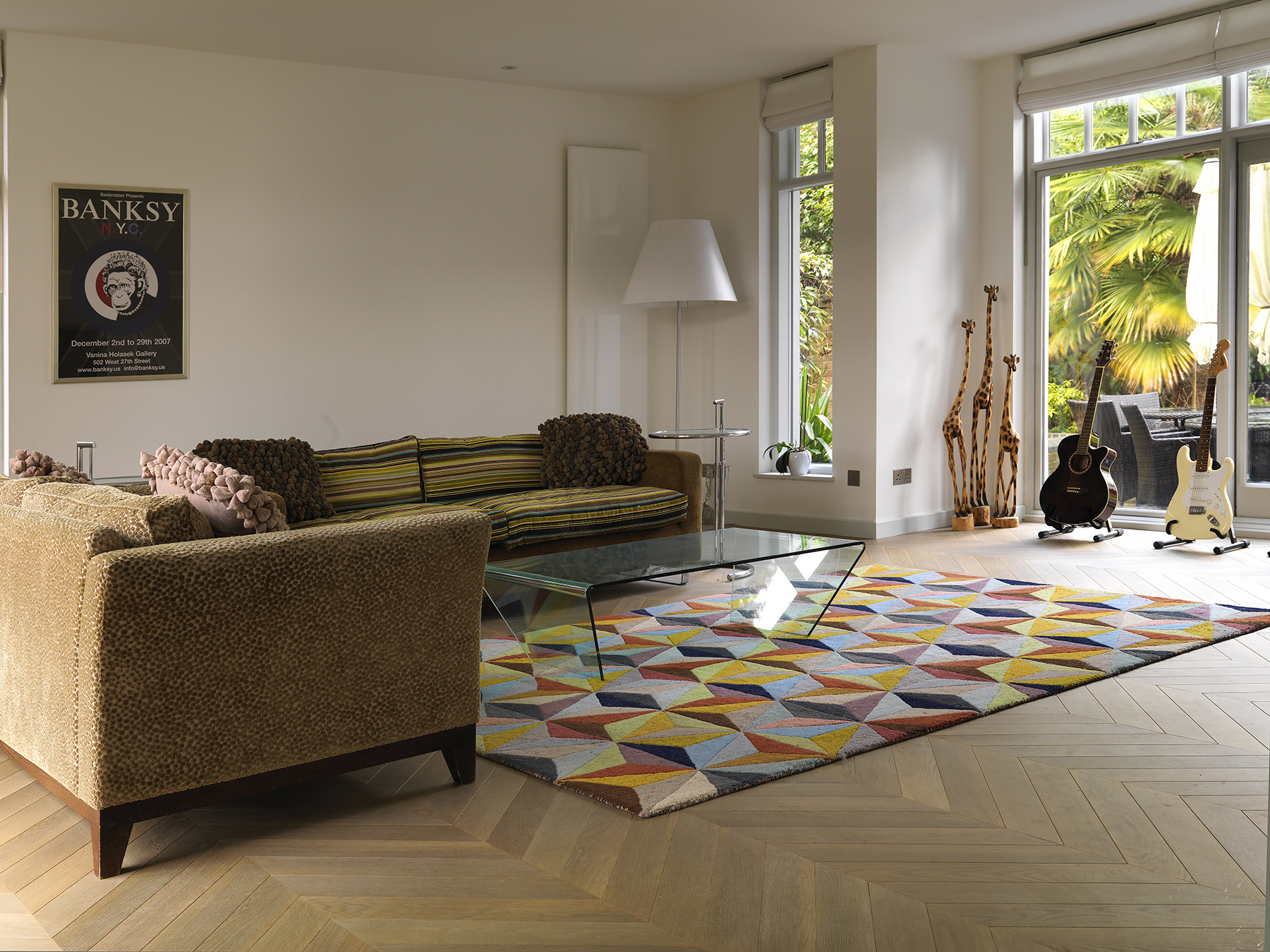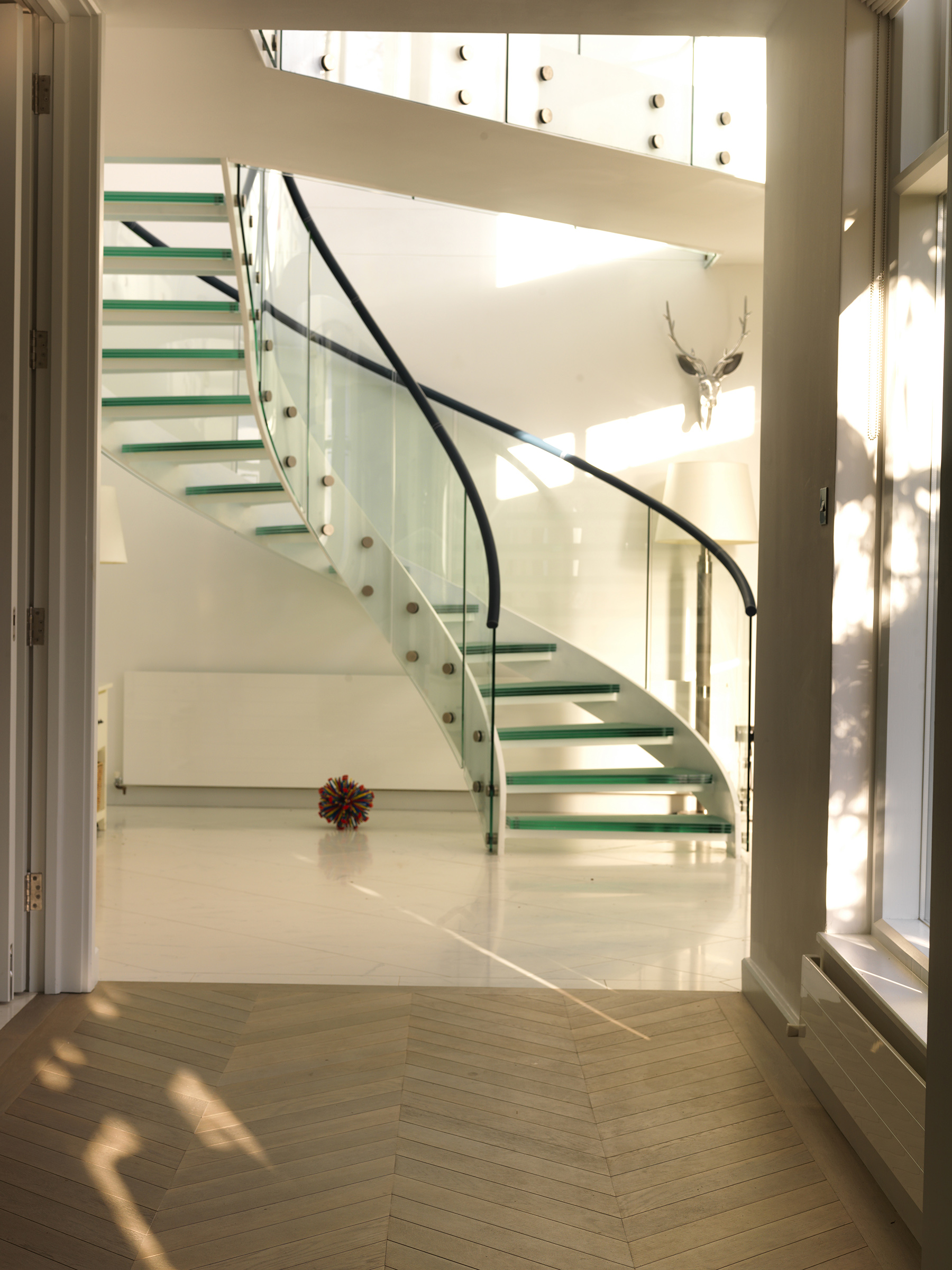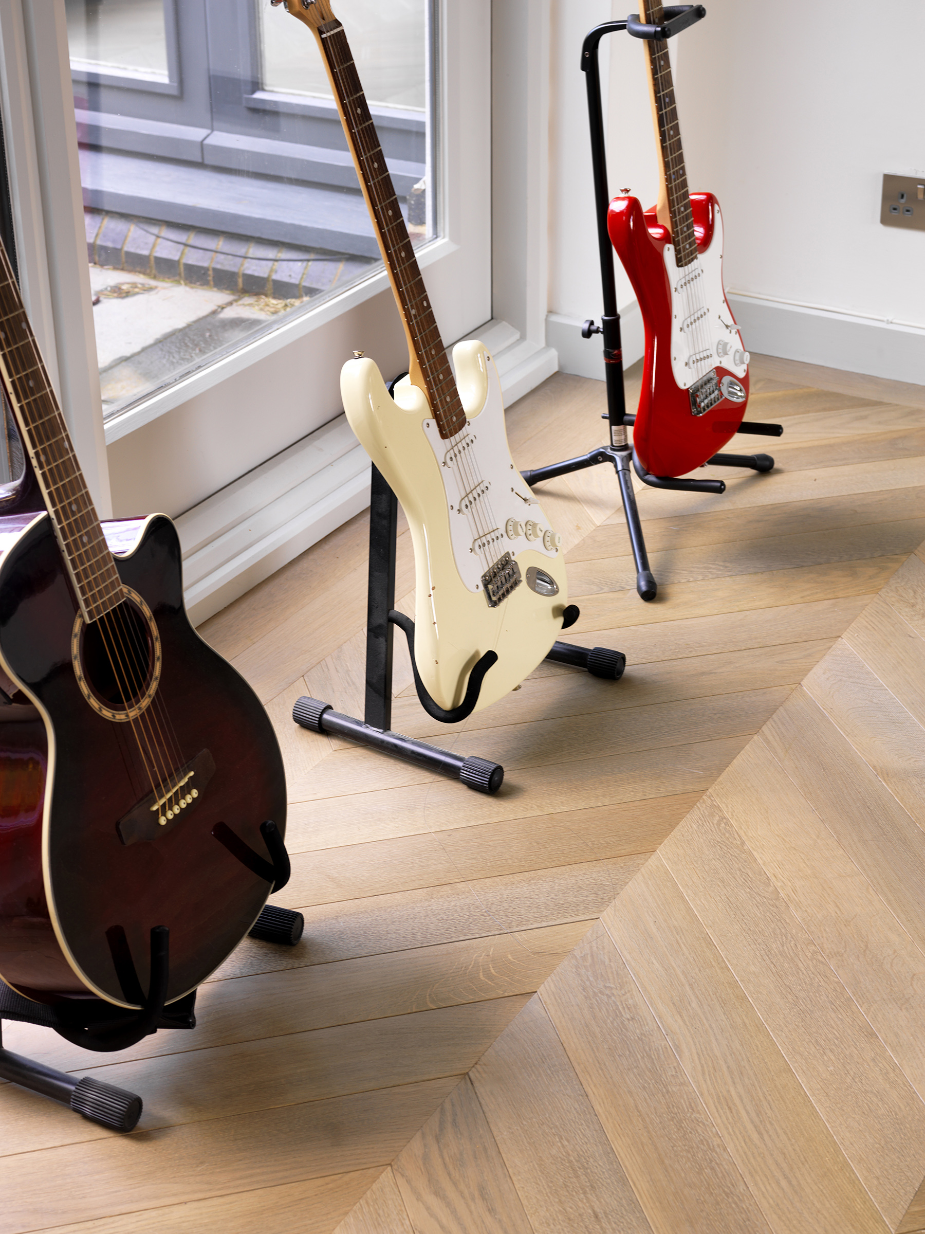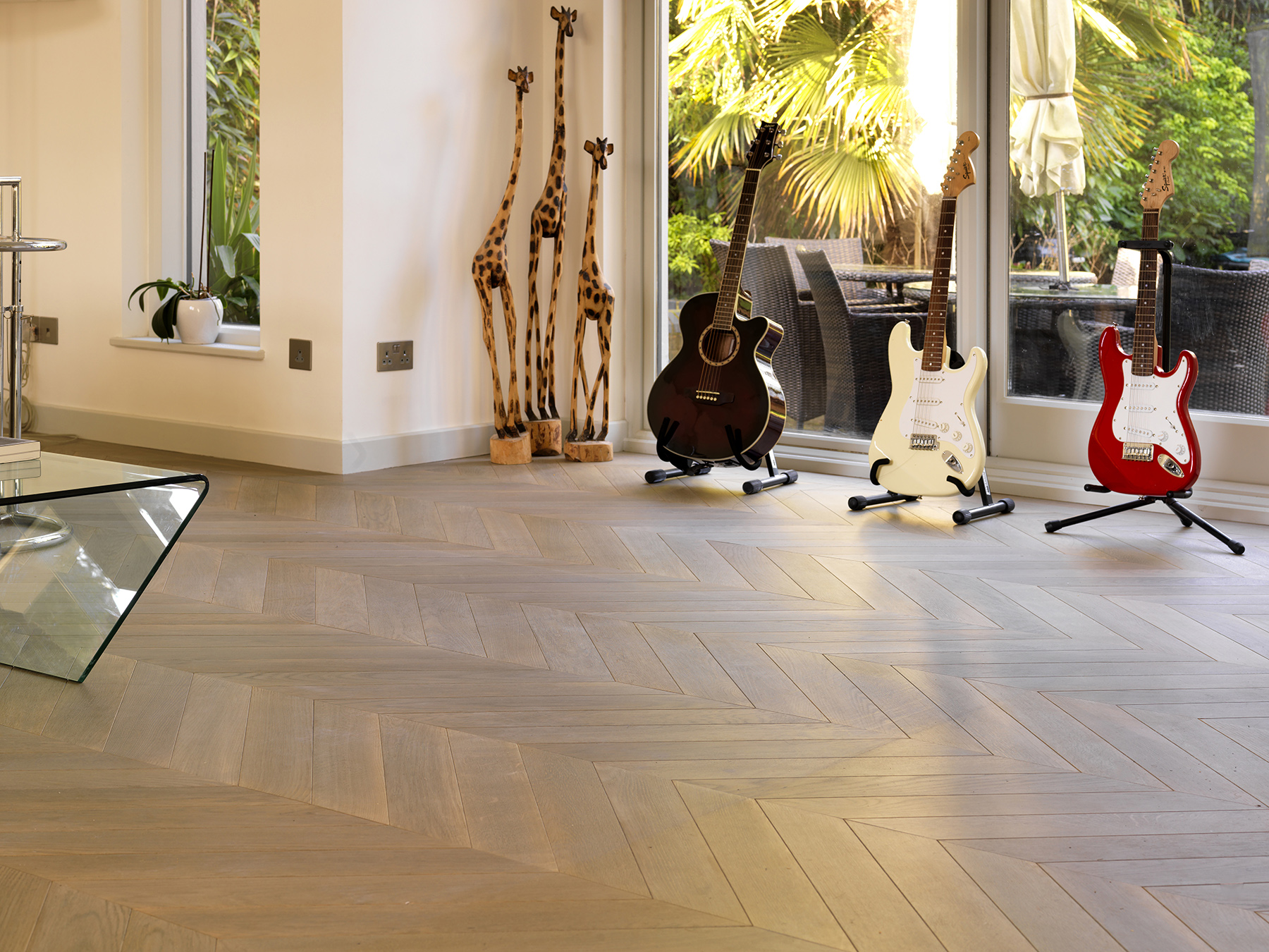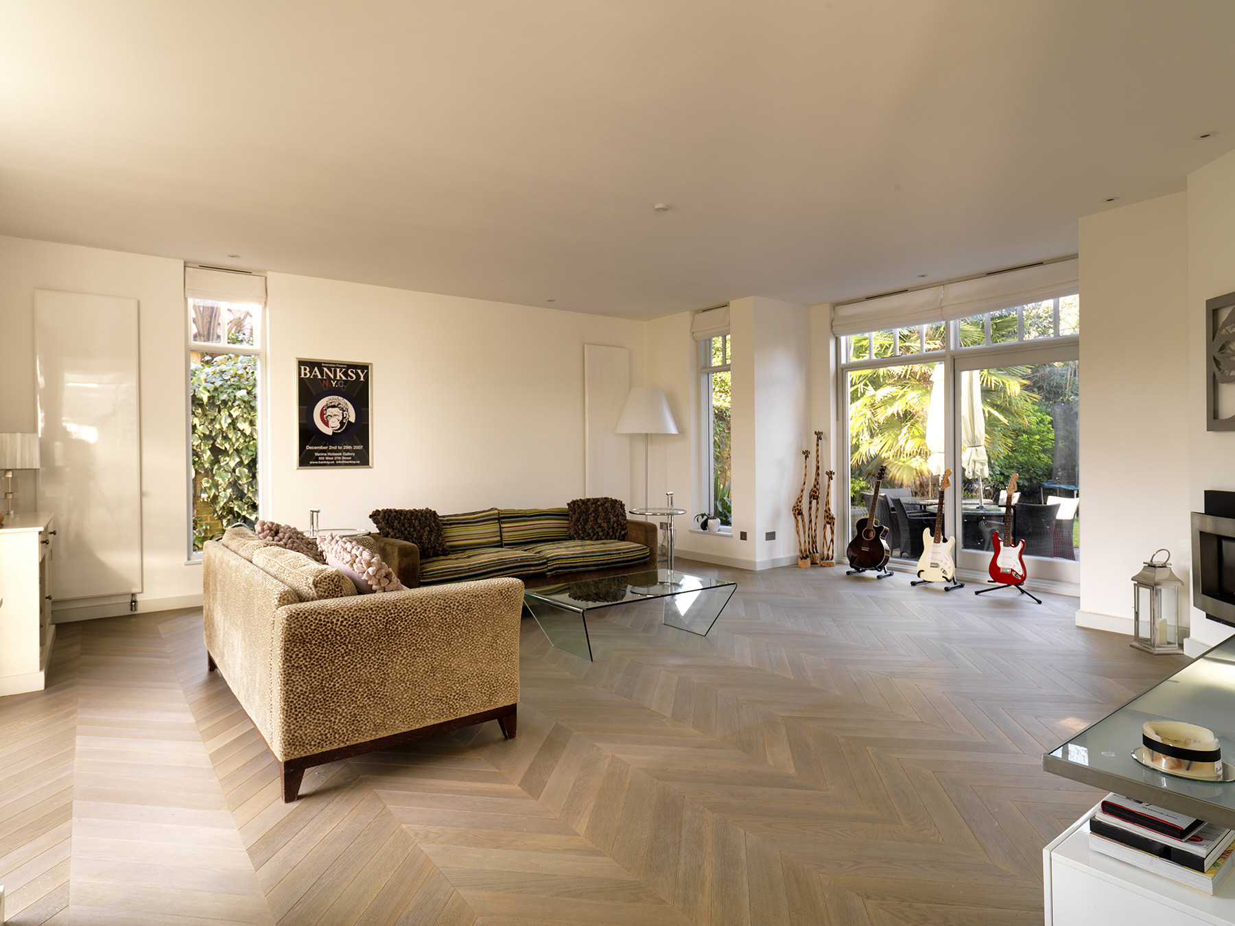 Bespoke oak parquet made and installed in chevron pattern.